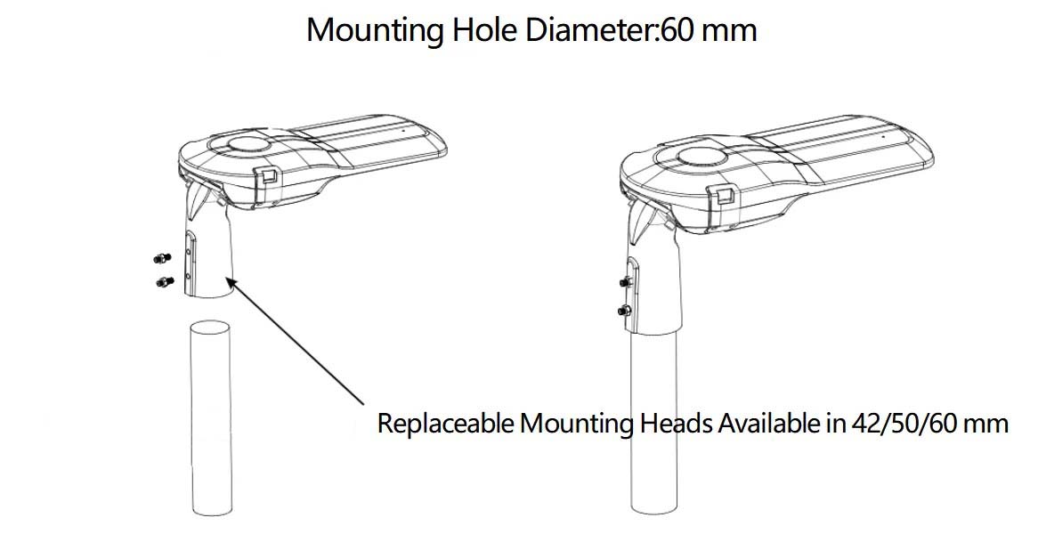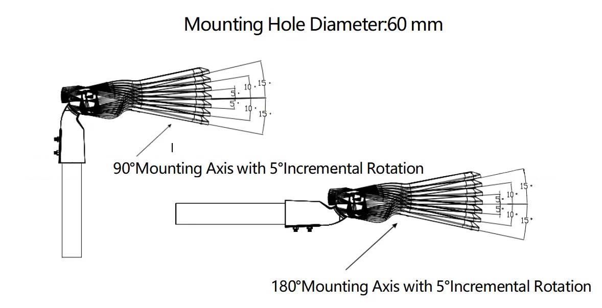 8. Elbow conduit,suitable for installation on vertical and horizontal poles;the lamp head angle is adjustable;