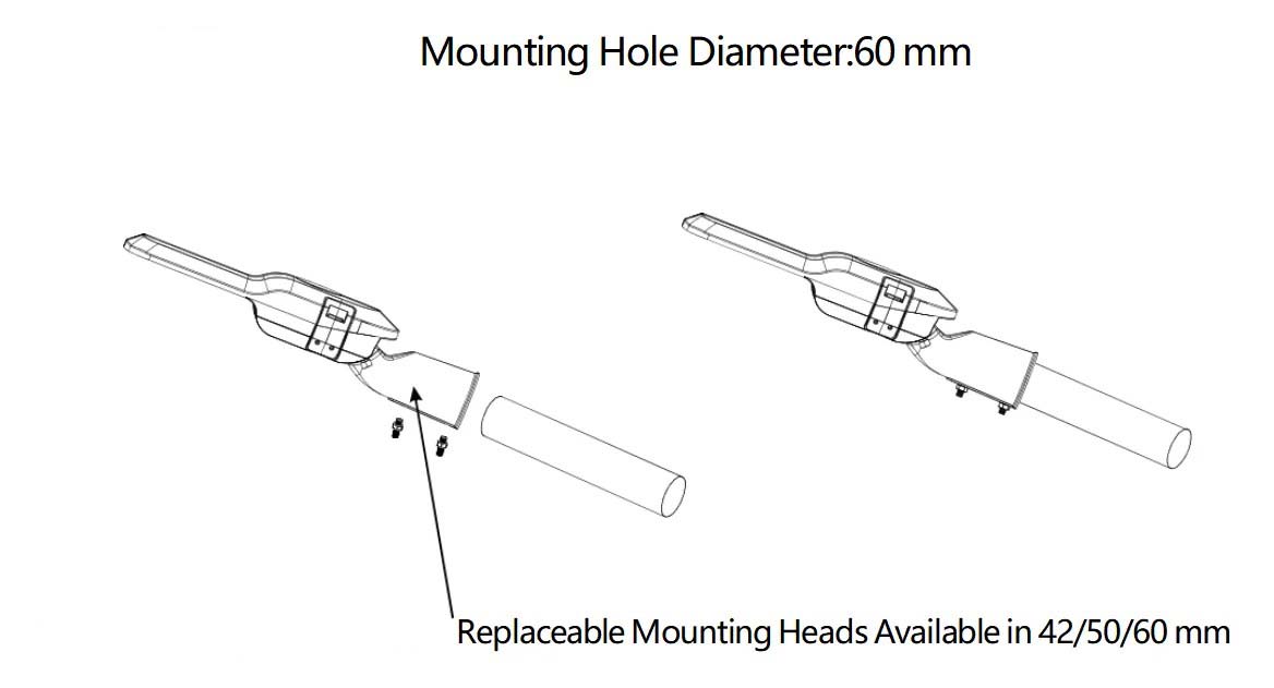 8. Elbow conduit,suitable for installation on vertical and horizontal poles;the lamp head angle is adjustable;